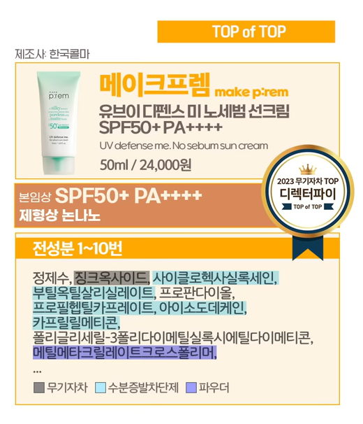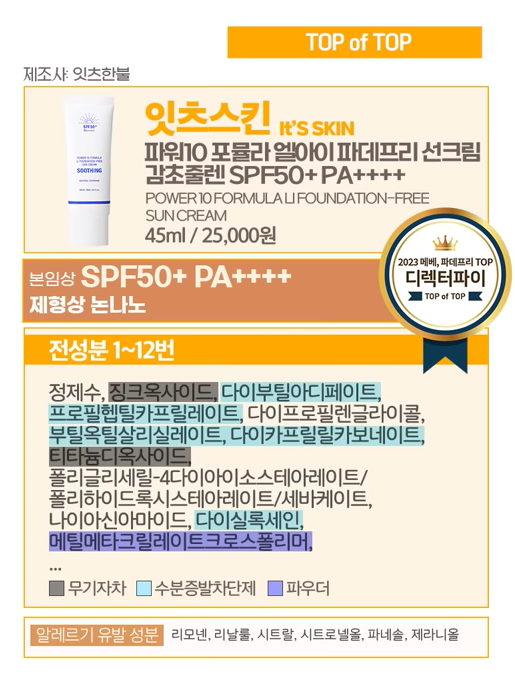 2023년 디렉터파이가 수개월간 테스트하고 검증까지 끝낸 선크림 top of top을 얼마전 영상으로 올렸는데, 영상을 보다 빠르게 제품확인을 하시고 싶은 분들 위해 정리해 보았습니다.