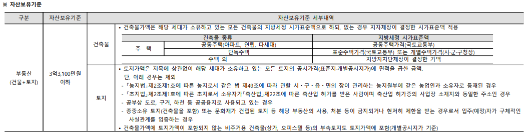 조건 : 부동산 (건물 + 토지) 합산하여 3억 3,100만 원 이하